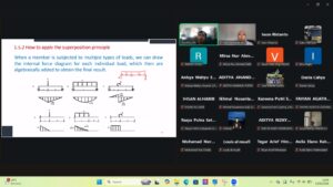 Kuliah umum ini menghadirkan salah satu dosen di bidang Struktur dari Can Tho University of Technology, Vietnam, yang menyampaikan materi dengan tema Internal Forces and Internal Force Diagram in Strength of Materials. Dalam pemaparannya, narasumber menjelaskan secara rinci konsep dasar sifat mekanik material dan bagaimana cara membuat diagram momen, topik ini berkaitan dengan Mata Kuliah Analisis Struktur.